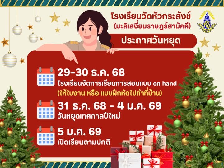 | 10 ตุลาคม 2568 | ประกาศผลการเรียน 14 ต.ค. 68 |