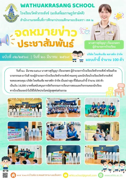 วันที่ ๒๐ มีนาคม ๒๕๖๙ นางสาวสุกัญญา เรืองเกษตร ผู้อำนวยการโรงเรียนวัดหัวกระสังข์ พร้อมด้วยนายกรกมล ผาวันดี รองผู้อำนวยการโรงเรียนวัดหัวกระสังข์